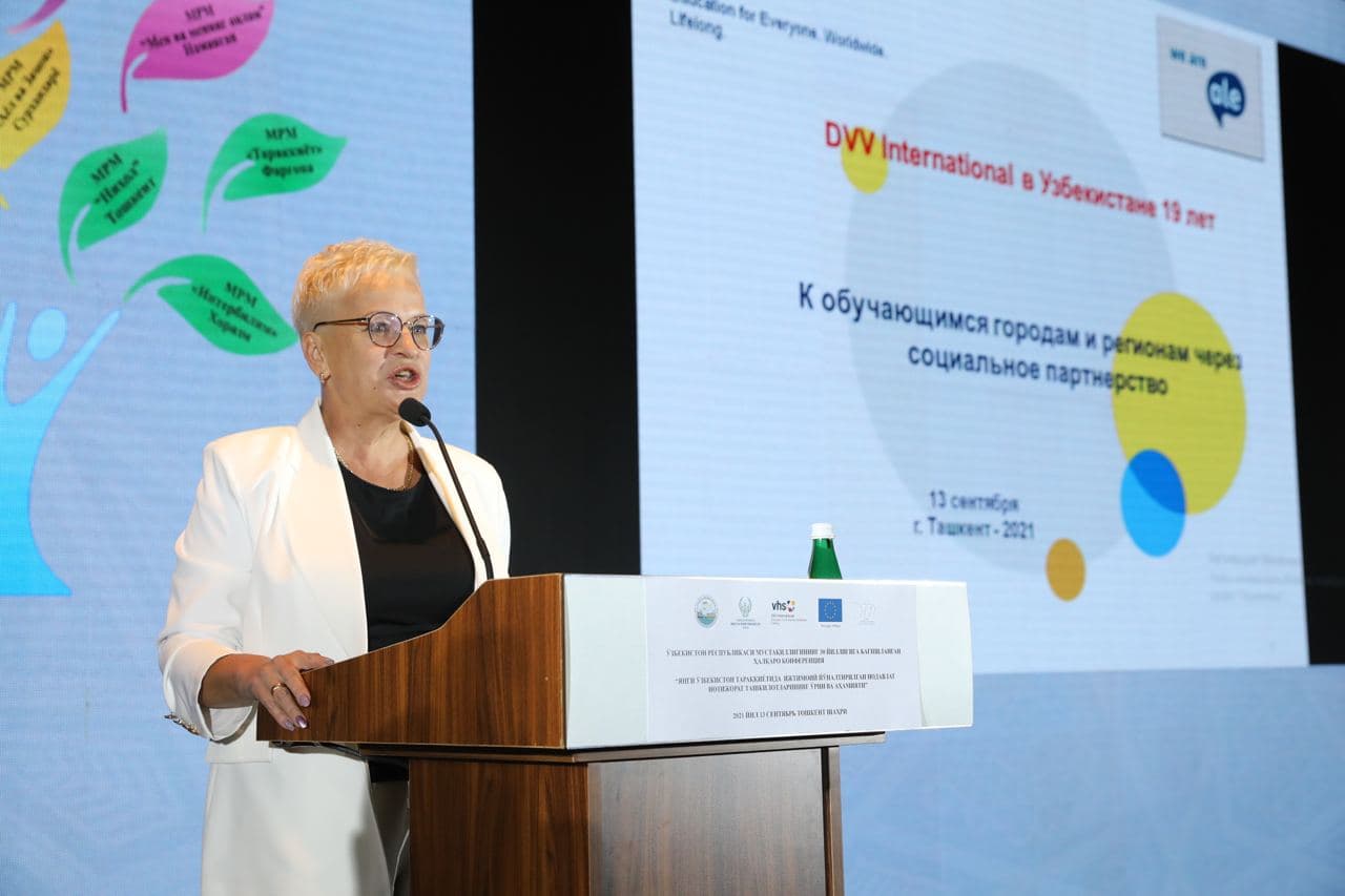 2002 йилдан бошлаб, DVV International Ўзбекистонда ўз фаолиятини олиб боради. Катталар таълими ва соҳасидаги етакчи ташкилот сифатида 50 йилдан бери Африка, Осиё, Лотин Америкаси ва Европа мамлакатларидаги фуқаро ва академик секторлардаги 200 дан ортиқ ташкилотлар билан ҳамкорлик қилиб келмоқда. Мақсади аҳолининг заиф гуруҳларини ўқитиш учун сифатли таклифларни ишлаб чиқиш, КТЎ нинг самарали тизимини яратиш, тажриба алмашиш, консальтатив қўллаб-қувватлаш ва бошқалар.