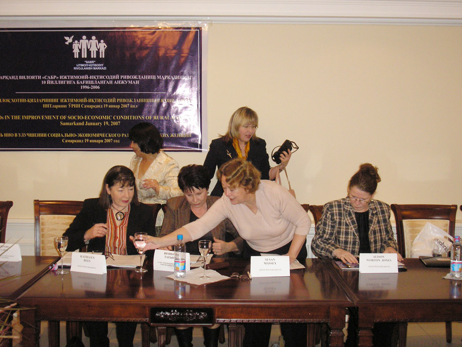 Date: January 19, 2007 Participants: Deputies of the Oliy Majlis, representatives of the Central Bank of Uzbekistan, the Association of Women's NGOs "Mehr", Representatives of the Association of Business Women of Uzbekistan and the Samarkand region, partners - the Nordwest project, the MFO of the Andijan region, the MF of the ADJ program of the Kashkadarya region, the Association of Credit Unions of the Samarkand region, representatives of regional and city khokimiyats, chairpersons of the women's committee of targeted regions of the region, representatives of the Samarkand regional justice department, representatives of the Internal Affairs Department, NGOs, the media, employees of local offices of the Sabra microfinance program, partners from the Netherlands and Great Britain. Accompanying events: Exhibition - presentation of the activities of the SED "Sabr" Center for 10 years, description of programs, statistical data, photo exhibition. Each participant was handed out an anniversary informational booklet of the SED Center "Sabr".